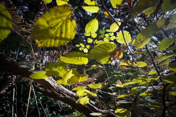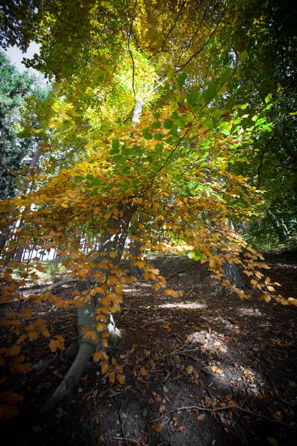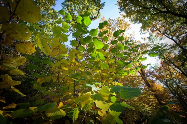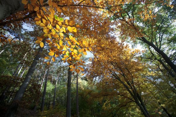 Draußen vor der Tür. Nur ein paar Schritte vom Atelier entfernt und schon beginnt der Wald. Jede Jahreszeit, jeder Tag hat ein anderes Gesicht. Blätter, die erst neu entstehen und im Laufe des Jahres sich nicht nur in ihrer Farbigkeit verändern, Lichtstimmungen die alles immer wieder anders erscheinen lassen. Der Übergang vom Sommer in den Herbst zeigt die ganze Vielfalt der Farben in den Wäldern. Das noch kräftige, schon tiefer stehend Licht hebt die Leuchtkraft der Farben noch mehr hervor.