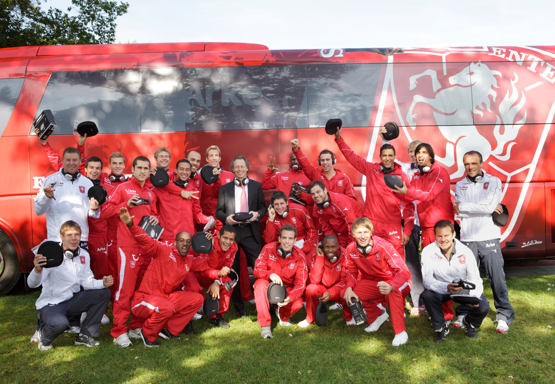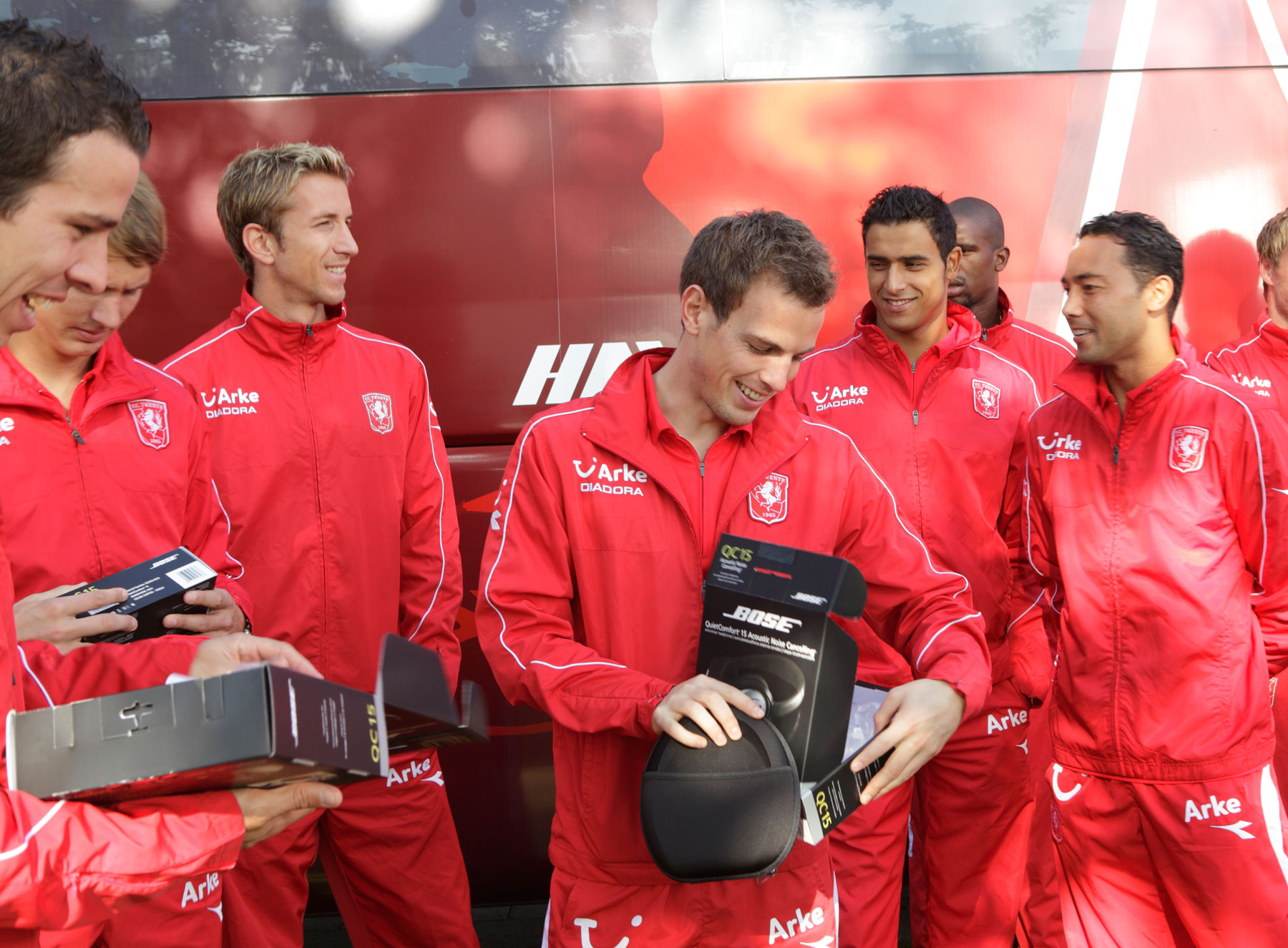 Kurz vor der Abfahrt zum Auswärtsspiel gegen Rotterdam überreichte BOSE allen Spielern des holländischen Erstligisten Twente Enschede die neusten BOSE Headphones.